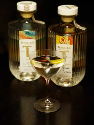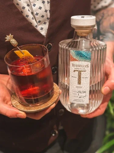 Tessellis to słowo pochodzące z języka łacińskiego. Oznacza mozaikę. Jest swoistą metaforą nawiązującą do produkcji ginu, wódek botanicznych i innych mocnych alkoholi. Trzeba idealnie dobrać ilości oraz rodzaje botaników, aby pasowały do siebie i tworzyły jedność. Nawiązujemy więc do mozaiki w całym koncepcie od naszego znaku po najwyższej jakości produkty, których etykiety i opakowania zostały ozdobione dedykowanymi mozaikami.